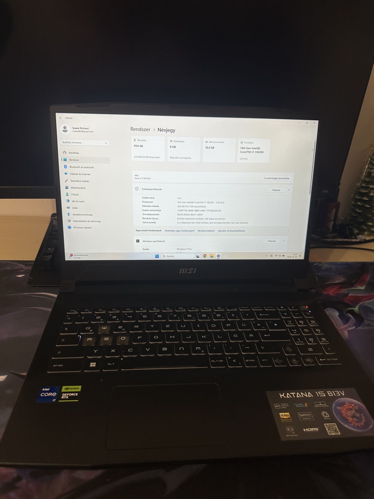 Eladó a képen látható MSI Katana B13VGK tipusú notebook. A notebook 16 hónapos. Kiválóan működik.