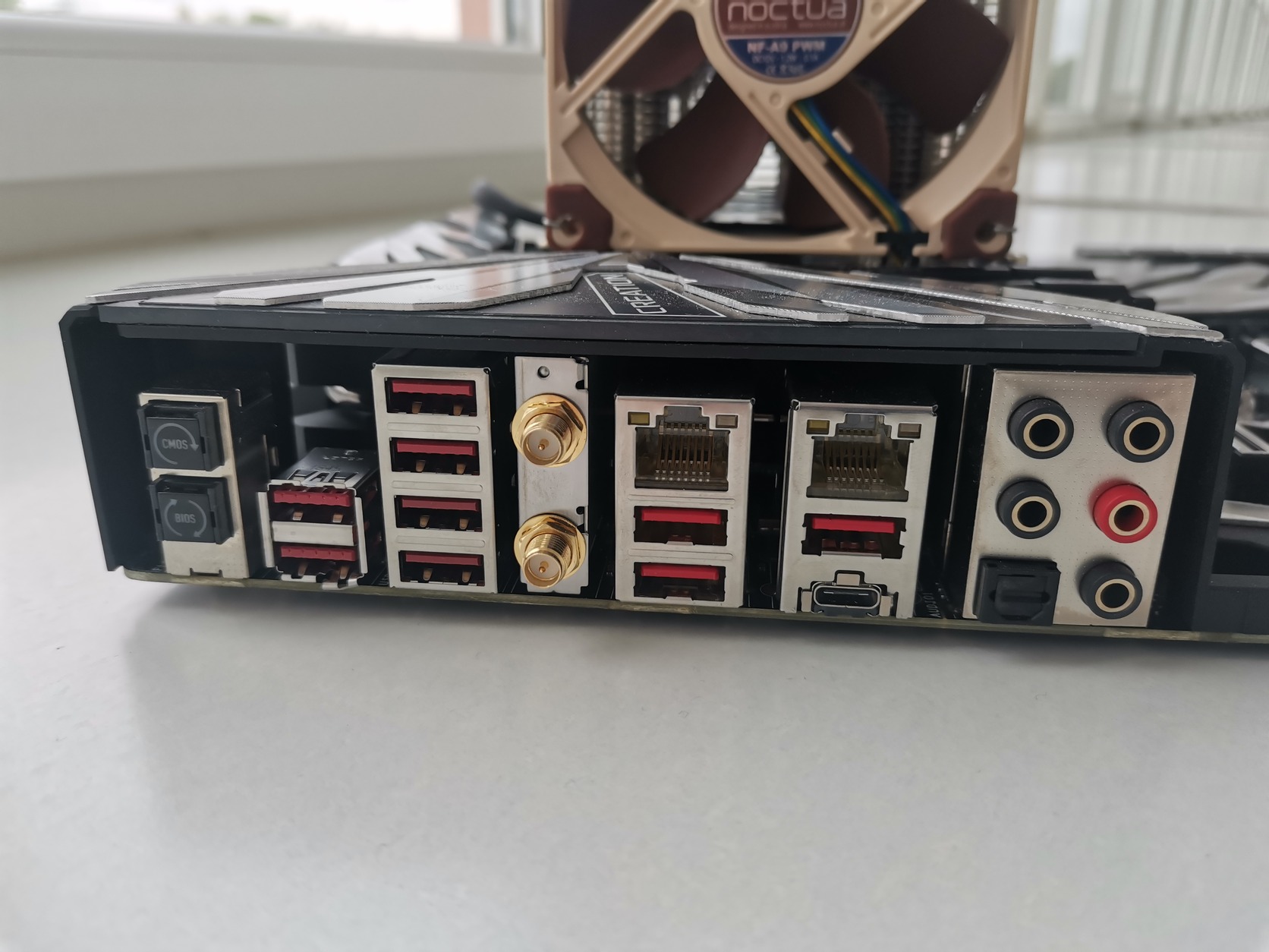 Az alaplap Ebay-ről lett vásárolva, a megvétele során nem érkezett meg hozzá a hátlapi takarólemezke, wifi antennája megvan!