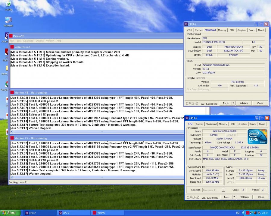 Most próbáltam E6320-as procival, prime95 12 órát futott hiba nélkül, nem fagy, nem hibázik mint a képen is látható. Inkompatibilitásra/inkompetenciára nem tudok garanciát vállalni!!