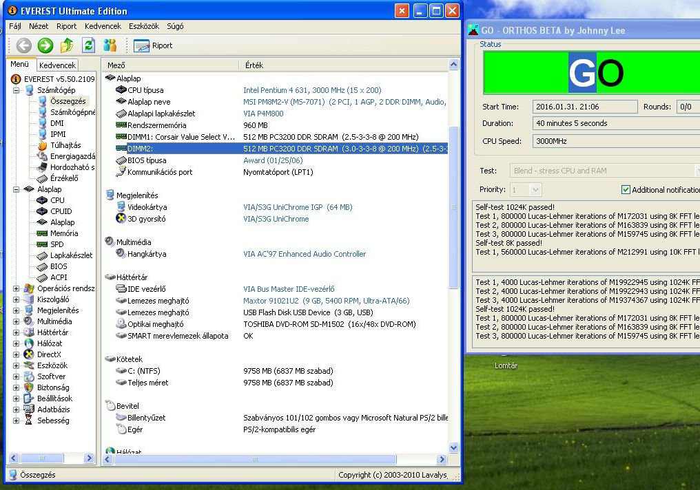 Pentium 4 631 (3 GHz, 2M, HT (1 mag, 2 szál), Cedarmill) processzorral,
