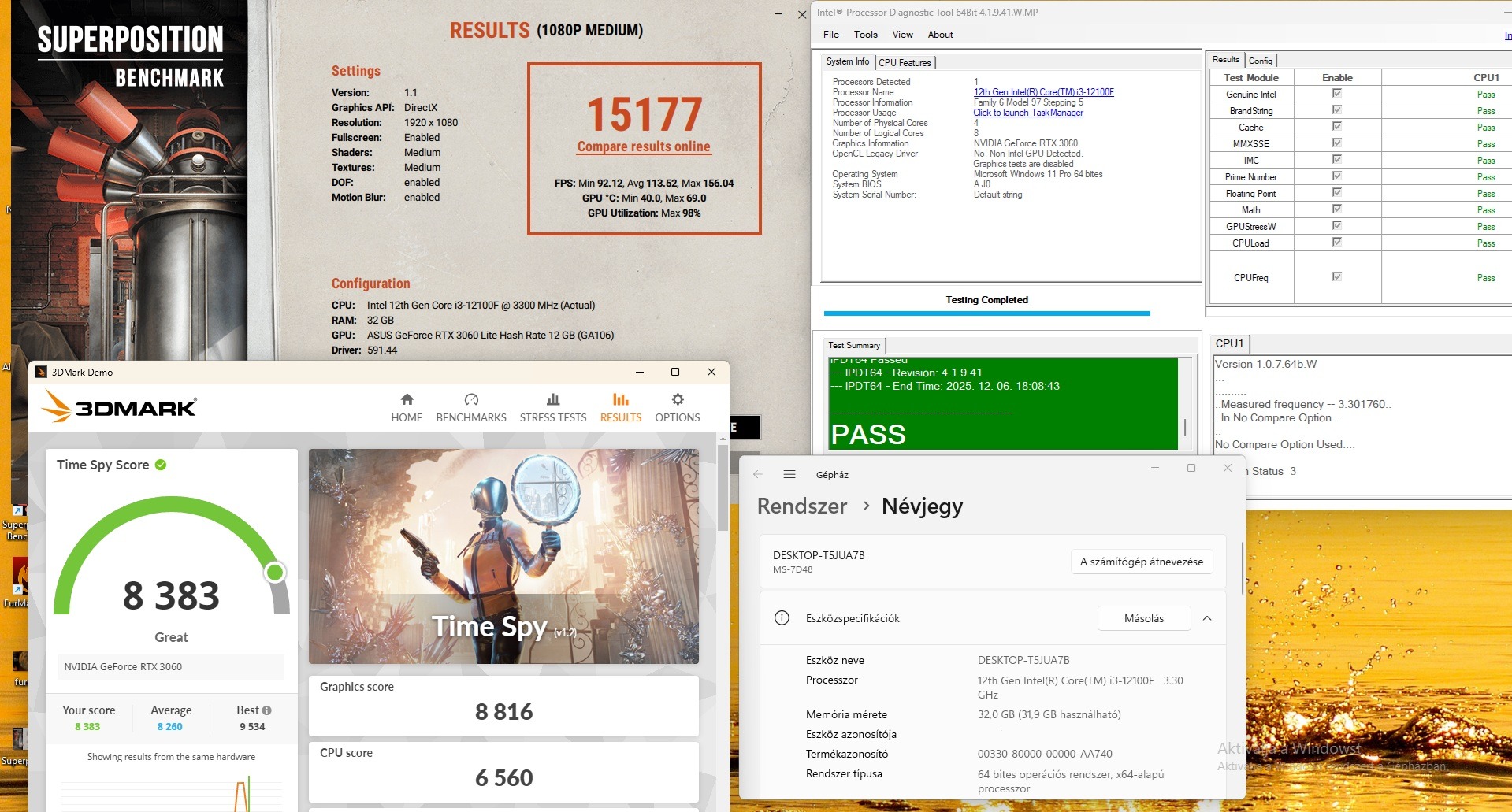 MSI Pro H610M/i3 12100F/32GB DDR4/RTX 3060 12GB/ 256GB NVME/1TB HDD stb...