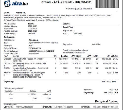 Alza garancia van rá (2022.04.29.-ig)