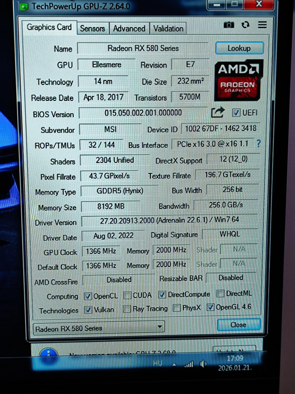A teszt erejéig egy Win 7-el telepített gépbe raktam be, azért a régebbi driver verzió, természetesen frissebb driverrel is gond nélkül fut.