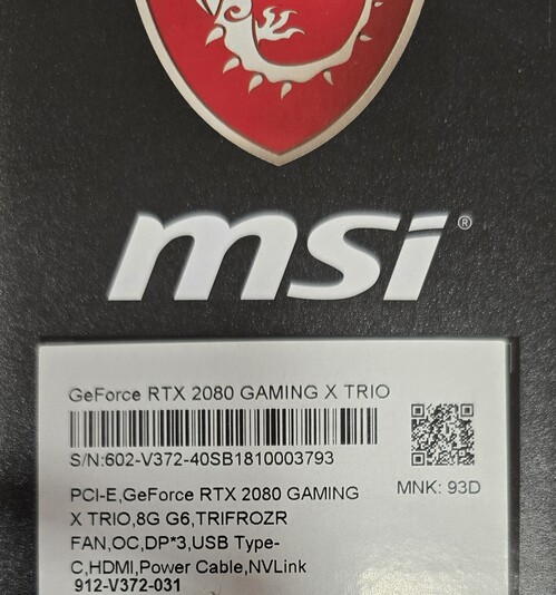 PCI-E, GeForce RTX 2080 GAMING X TRIO, 8G G6, TRIFROZR FAN, OC, DP*3, USB Type-C, HDMI, Power Cable, NVLink