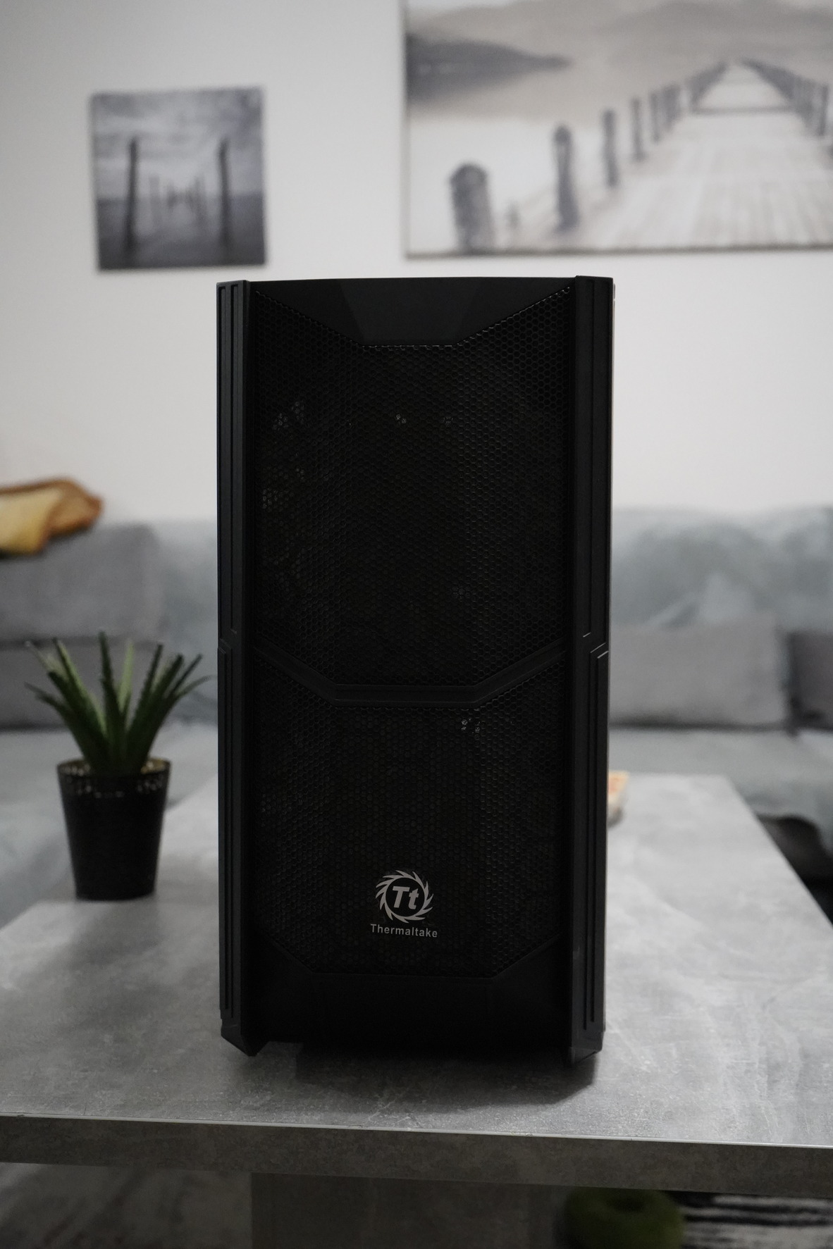 Ház: Thermaltake (jó szellőzésű, 2db nagy első ventilátorral)