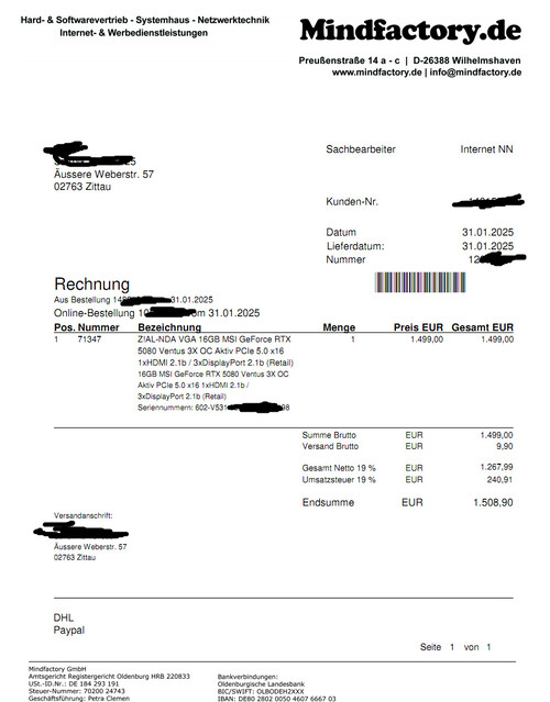 A számlán 1508,90 euró szerepel (ld. fent) + 17,79 eur mailboxde Magyarországra.