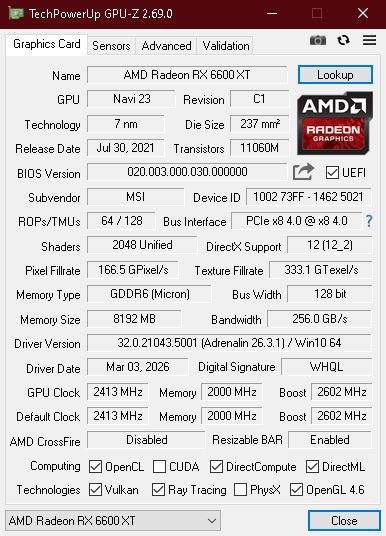 Jegelve – MSI RX 6600XT Mech OC - garanciális