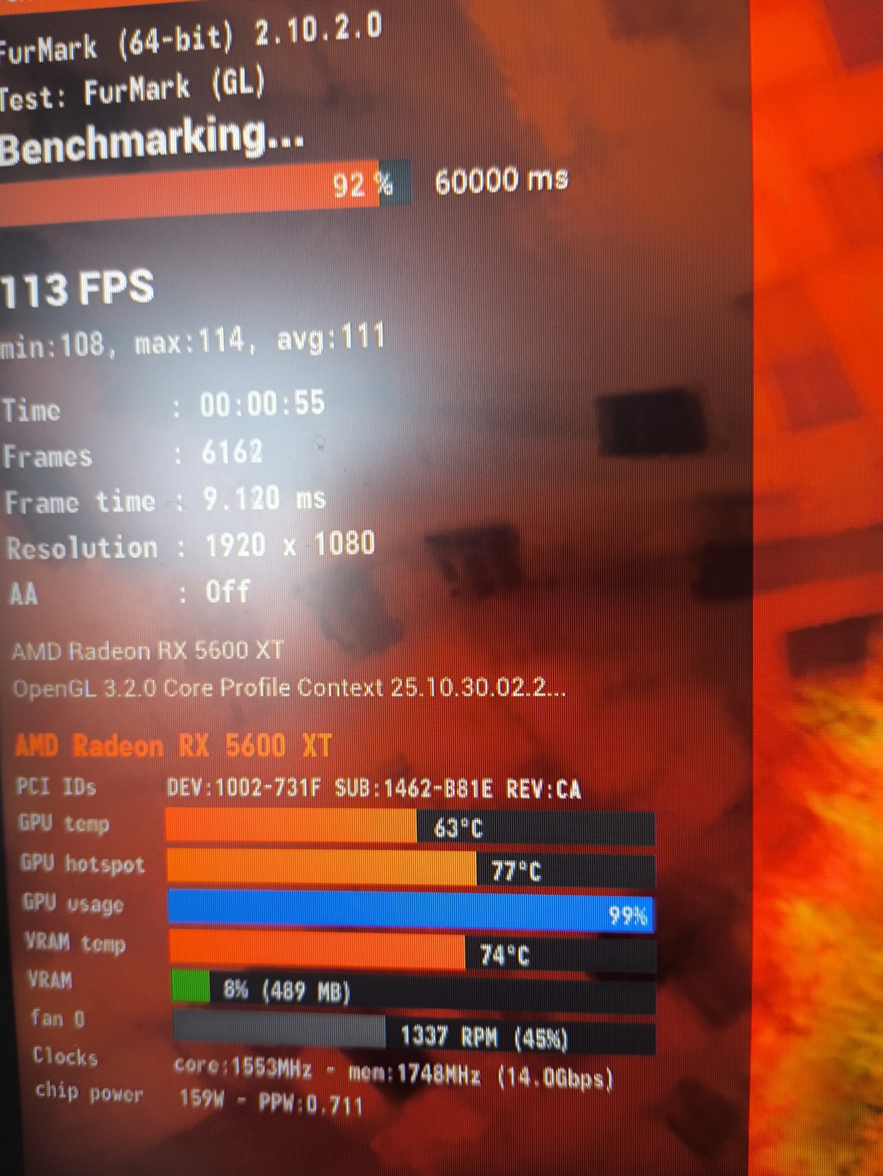 FurMark teszt eredményt mellékeltem.