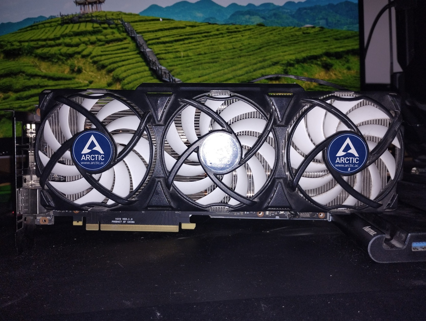 Gyárilag vízhűtéses volt, de a pumpa megadta magát, ekkor vásároltam rá, 30.000.-Ft-ért ezt az Arctic Accelero extreme IV-et, kegyetlenül jó, Warzone 1080 ultra, Delta force 1080p Ultra 55-56fok és efölé nem nagyon megy.