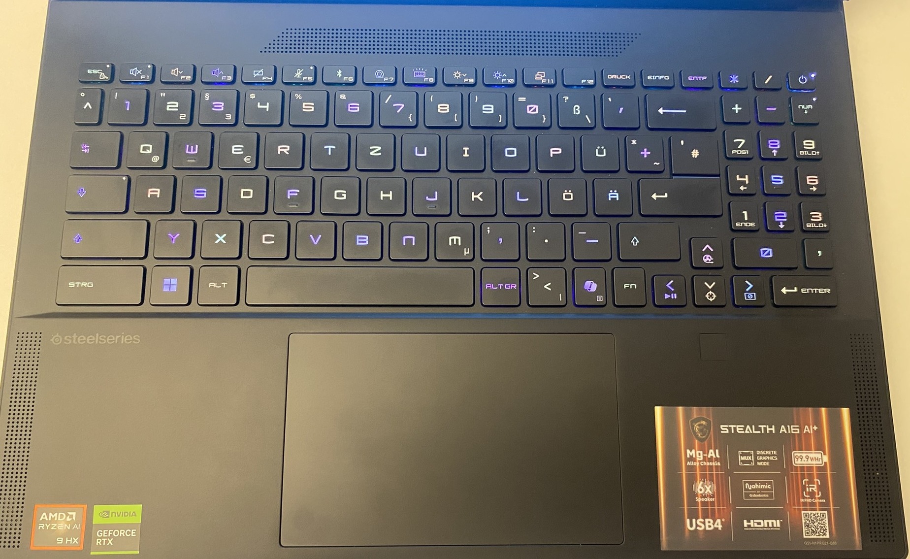 A magnézium–alumínium ház, Dynaudio hangrendszer és a SteelSeries RGB billentyűzet garantálják a kompromisszummentes minőséget játékhoz, munkához vagy tartalomgyártáshoz.