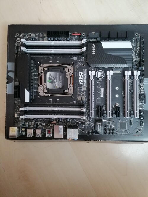 Kihasználtság miatt Eladó MSI X99A SLI Krait Edition Alaplap minden funkciója müködik , i/o sajnos nincs meg ,Gyári emblémás sata kábele van meg csak és Intel Xeon E5-2660 v3+ Gyári hütő