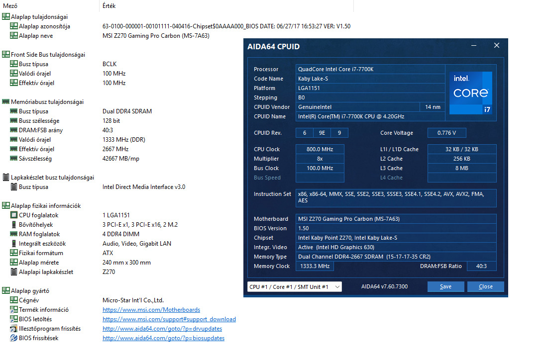 MSI Z270 Gaming Pro Carbon lap i7-7700K processzorral