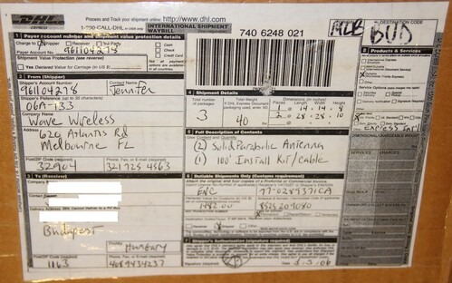 A "csomag" közvetlenül a gyártótól, Melbourne-ből érkezett megrendelésre.