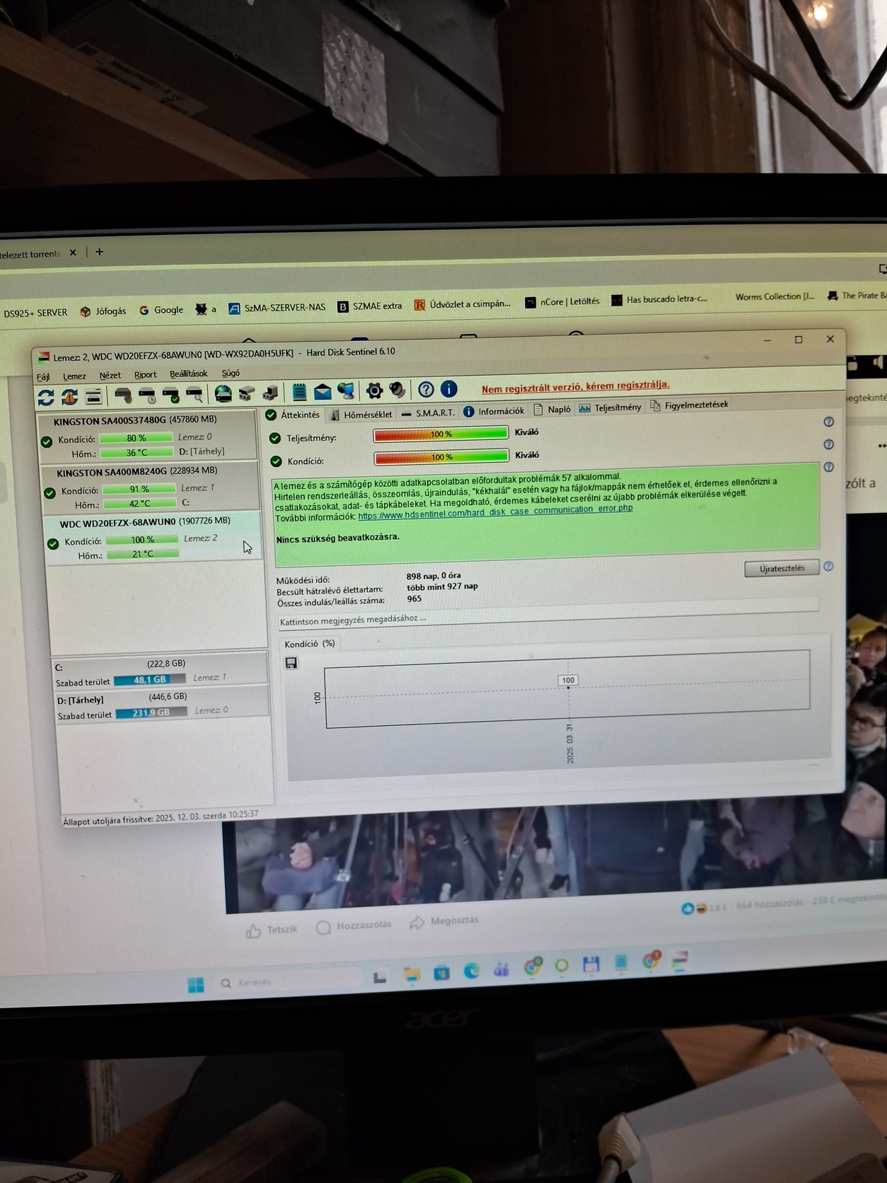 WD red 2gb HDD sentinel kép a képek között kb 850 órát menntek.