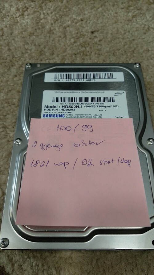 1) Samsung HD502HJ (500GB/7200rpm/16MB) HD Sentinel - 100/99 (2 gyenge szektor) - 1500Ft