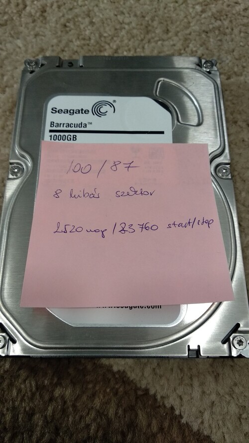 2) WD Green WD5000AADS (500GB/7200rpm/32MB) HD Sentinel - 100/92 (7 hibás szektor) - 1000Ft3) Seagate Barracuda ST1000DM003 (1000GB/7200rpm HD Sentinel - 100/87 (8 hibás szektor) - 2000Ft