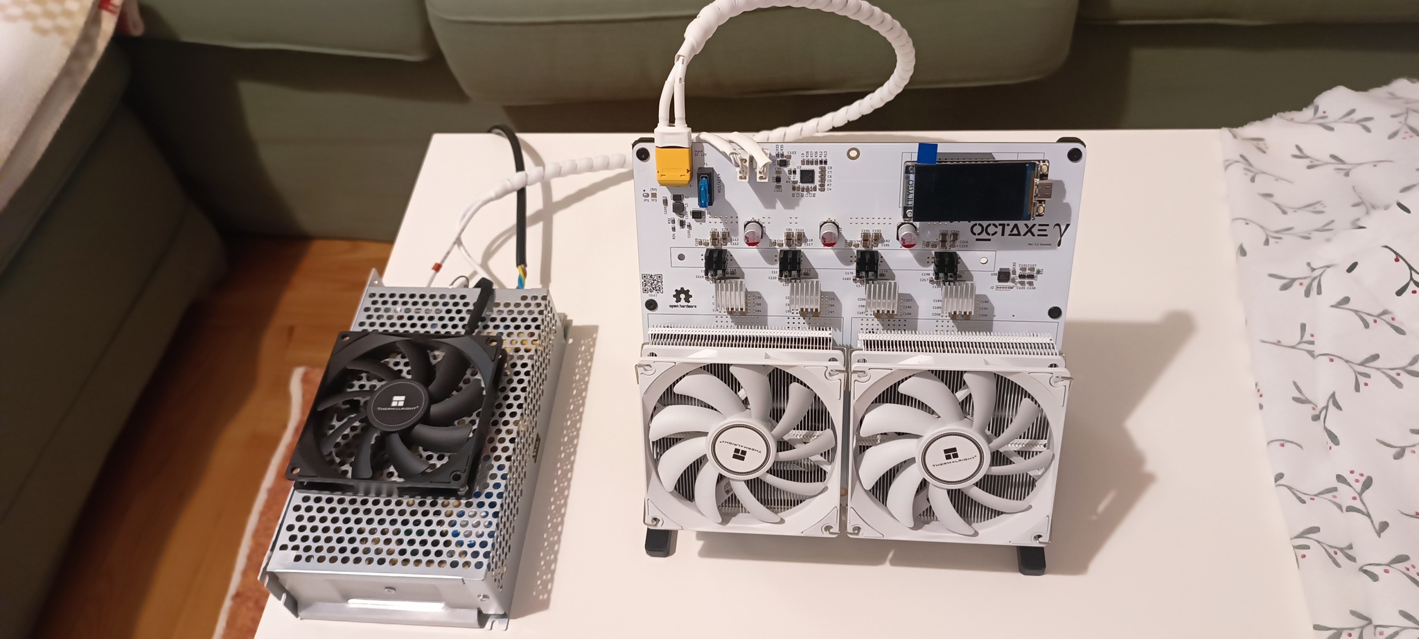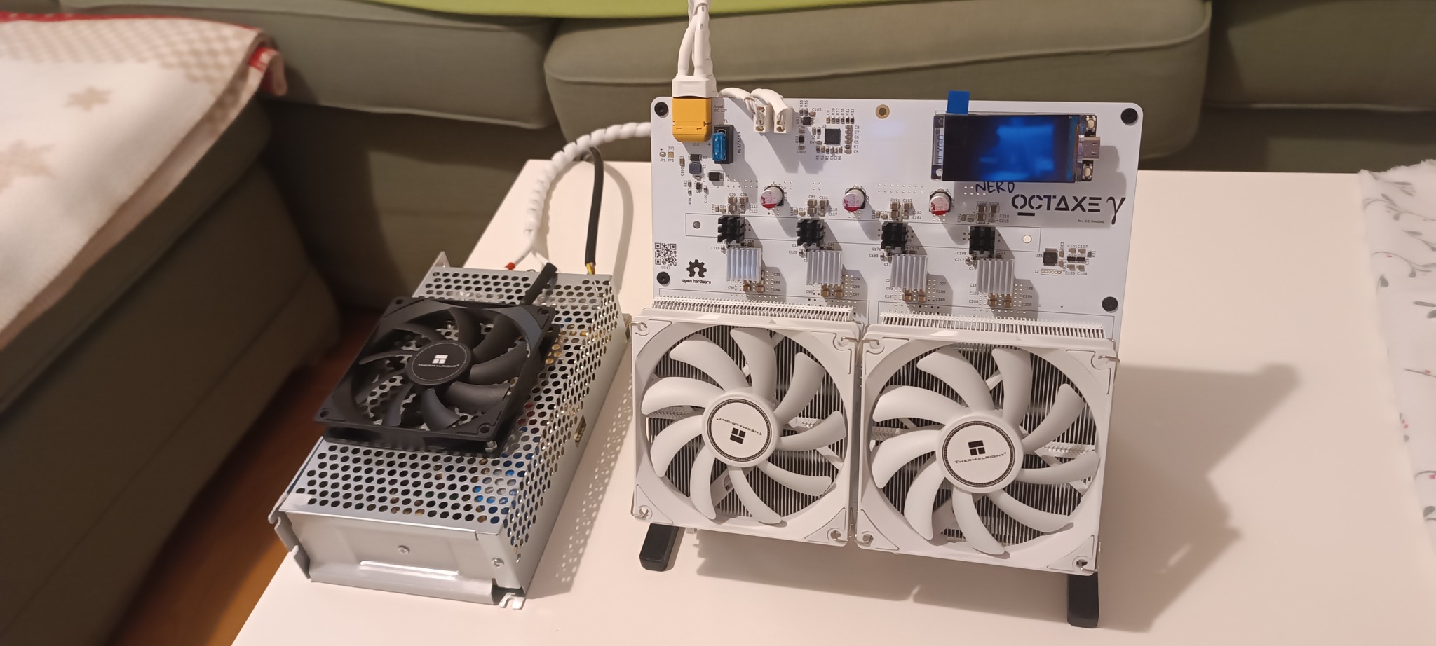 Eladó a képen látható 9.6 Th/s bányász masina. Nagyon csendes és megbízható jószág. Soha nem volt túlhajtva! A tápegységen extra ventilátorral, a jobban melegedő részeken extra hűtőbordával. Foxpost megoldható a vevő terhére de jobban örülnék a személyes átvételnek. Ha nem alkudozol adok hozzá egy extra noctua nf-a20-flx ventilátort ami akár a hátsó rész extra hűtésére is tökéletes!