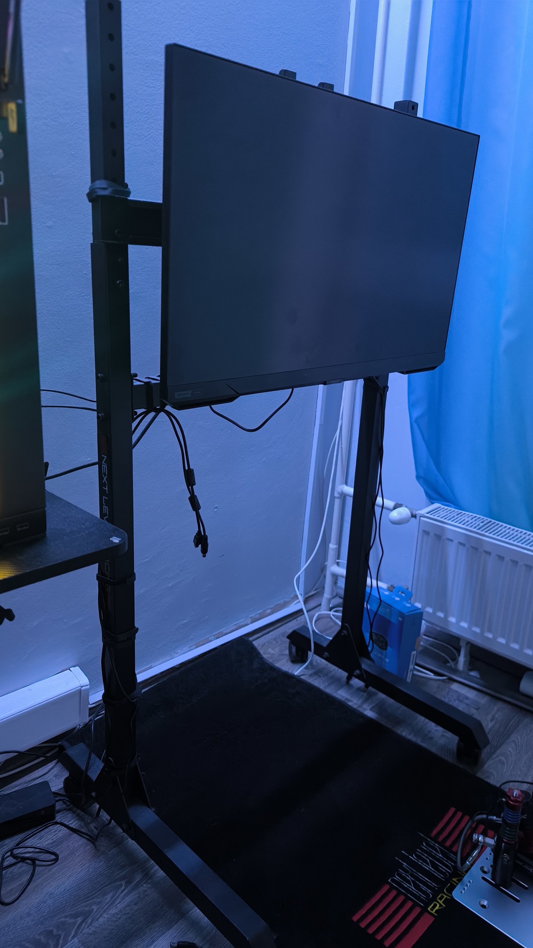 Eladó egy Next Level Racing monitor tartó, görgős lábakkal, állítható magassággal. 24-85 coll monitor méretig. Vesa 75*75 mm-től, 450*660 mm-ig.