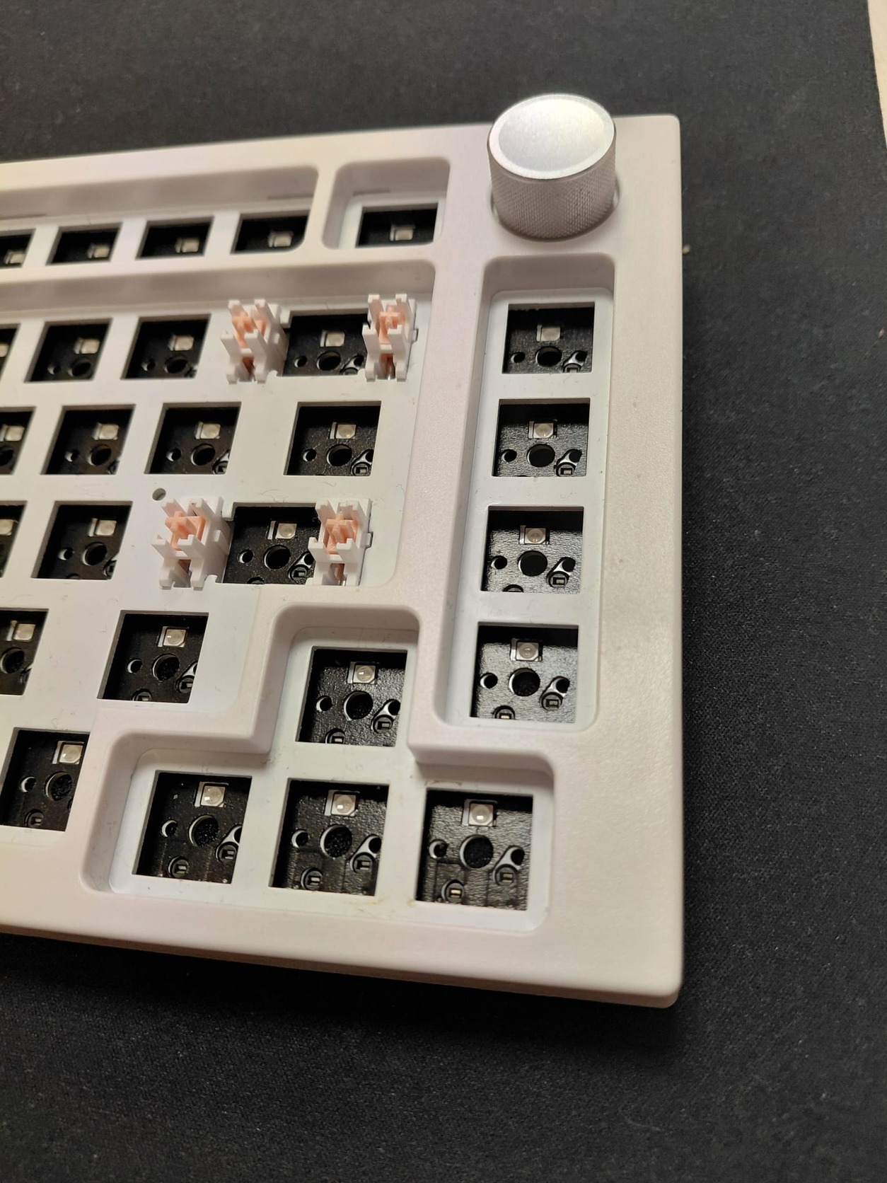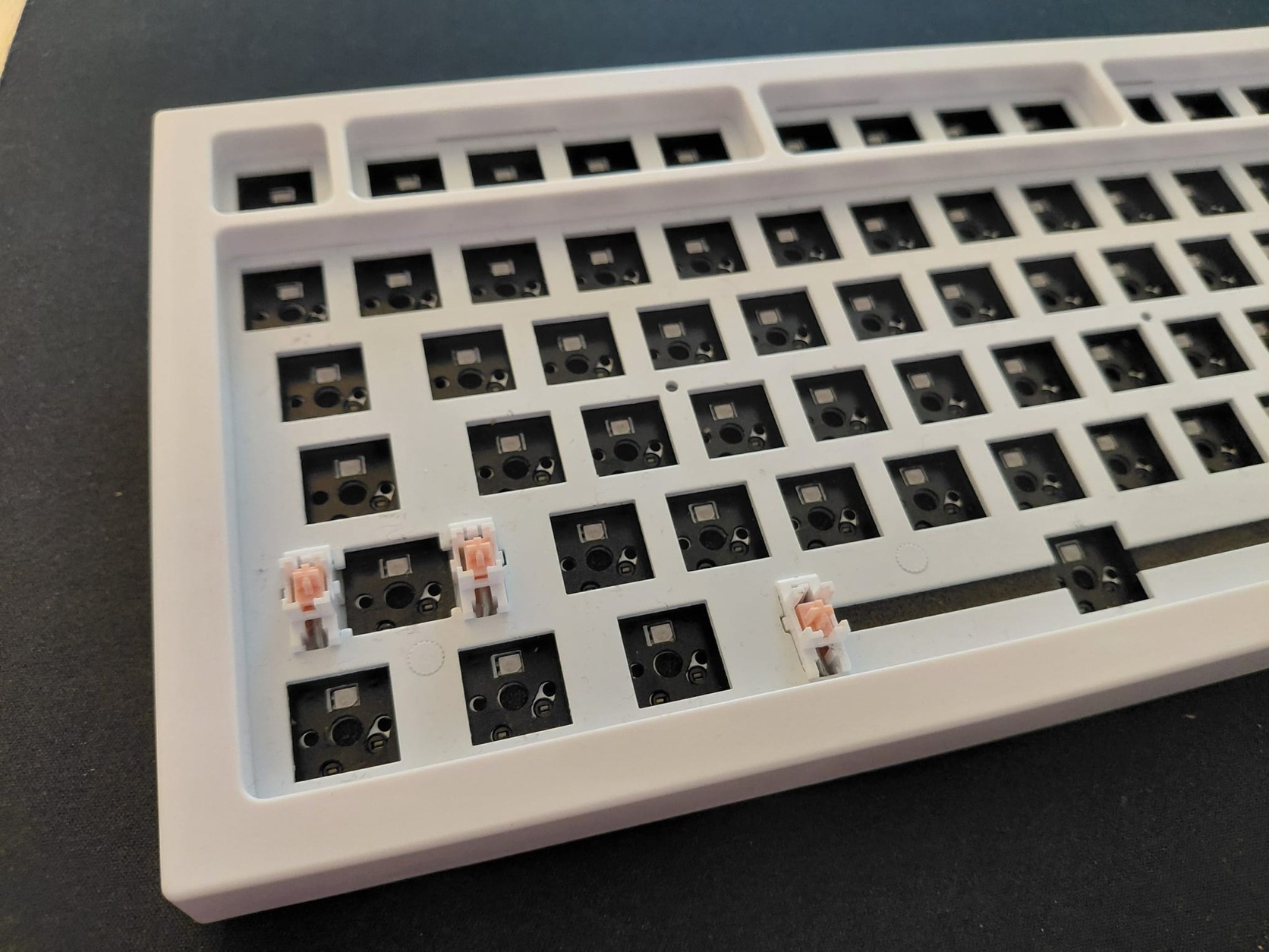 hotswap, usbc, 75%, ansi, minden switch alatt szivacs pad, ház aljába foam, gasket mount.