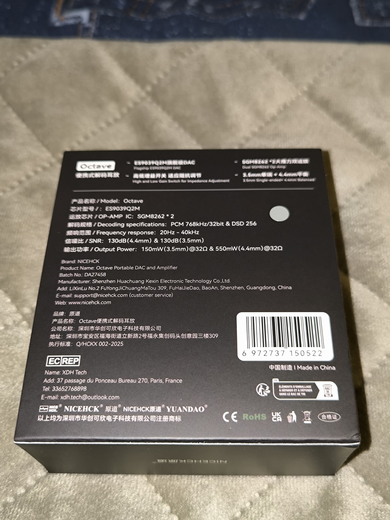 NiceHCK Octave Titanium dongle DAC ES9039Q2M, 32bit/768kHz
