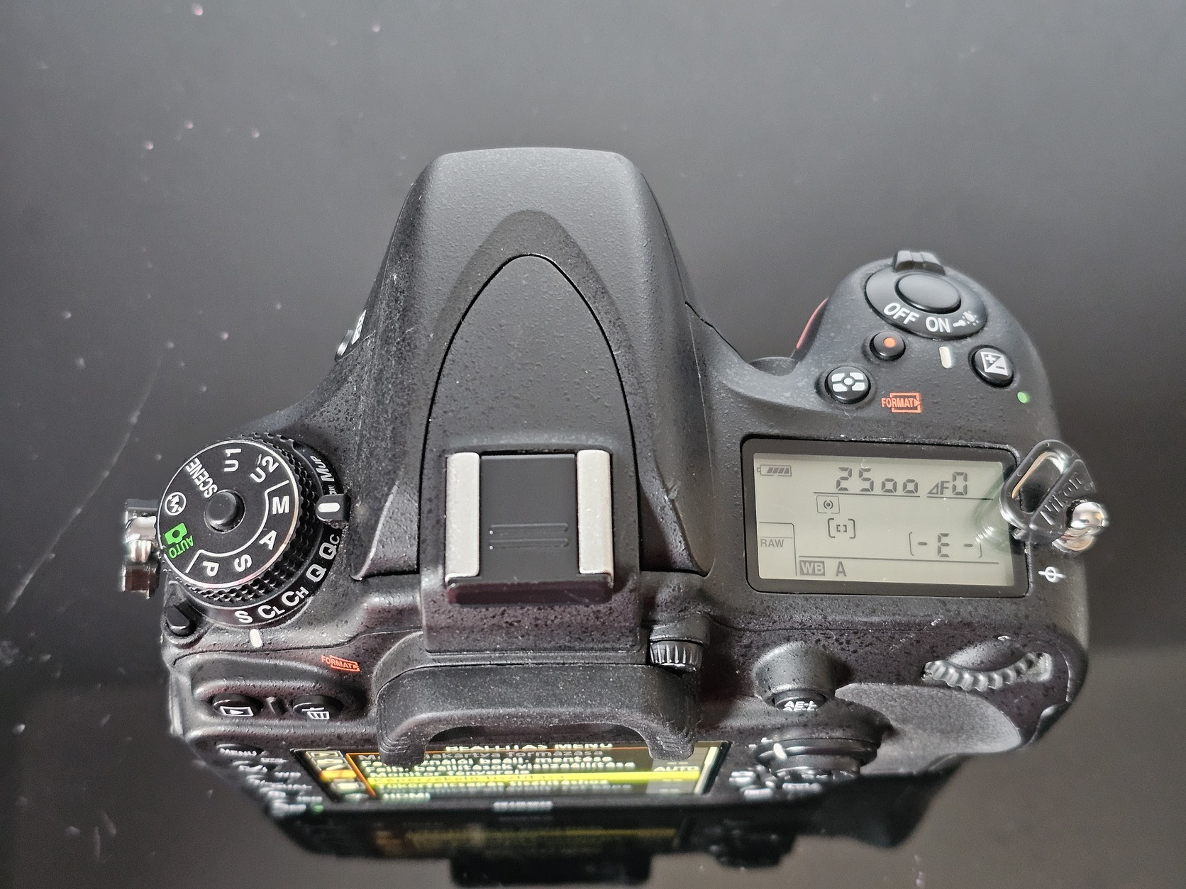 Szép állapotú, csak a szemkagyló gumi alatt van egy mélyebb karc. A kereső maga sértetlen. Hibásan vettem, repedt és csíkozott volt a kijelző képe. Gombokra nem reagált. Így cserélve lett benne kijelző (ennek színe sárgásabb picit), előlapi gombok szalagkábelestől. Azonban tovabbra sem reagált, így cserélni kellett benne alaplapot is. Ezért az exposzámot sajnos nemtudom. Az új alaplapban csak pár próbakép van. Kijelzőn gyári védőfólia.