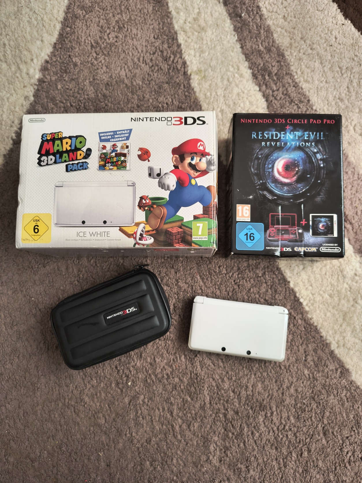 Eladó gyűjteményemből a képeken látható, korához képest nagyon szép állapotban lévő Nintendo 3DS Limitált kiadás, dobozában és minden tartozékával együtt. Doboz állapota 8/10. A konzol kiválóan működik, kijelzője fóliás. A csomag tartalma még egy limitált kiadású Circle pad pro Resident Evil edition, amihez szintén minden tartozéka jár. Doboz állapota 9/10. A gép moddolt (hShop), jelenleg 35 db játék található rajta. (Pokémon, Zelda, Mario játékok és még sok más). A csomaghoz tartozik továbbá egy kemény tok és 3 db érintő ceruza.