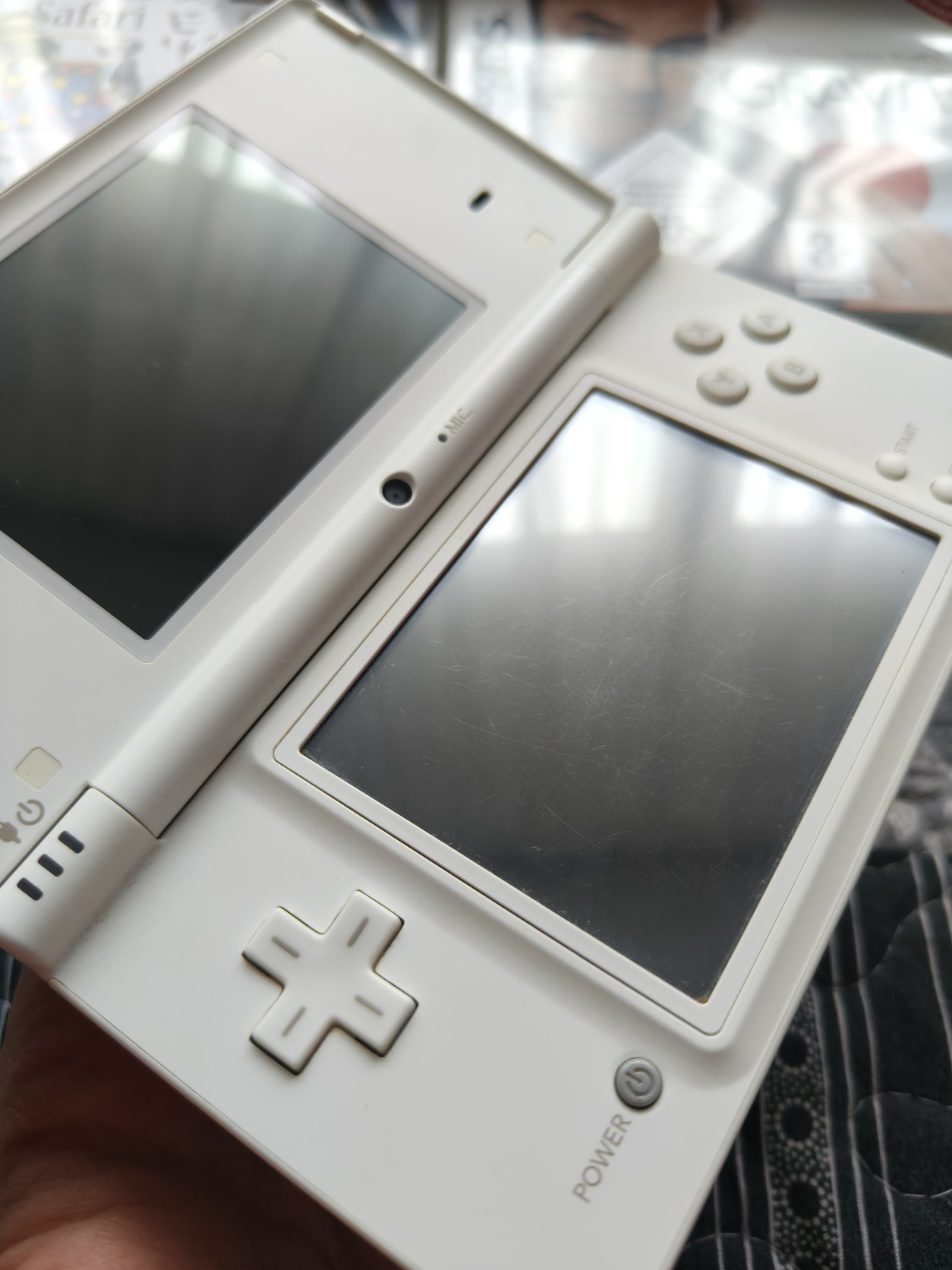 A konzol hibátlanul működik, alsó kijelző enyhén karcos, fölső karcmentes, burkolaton minimális használati nyomok.