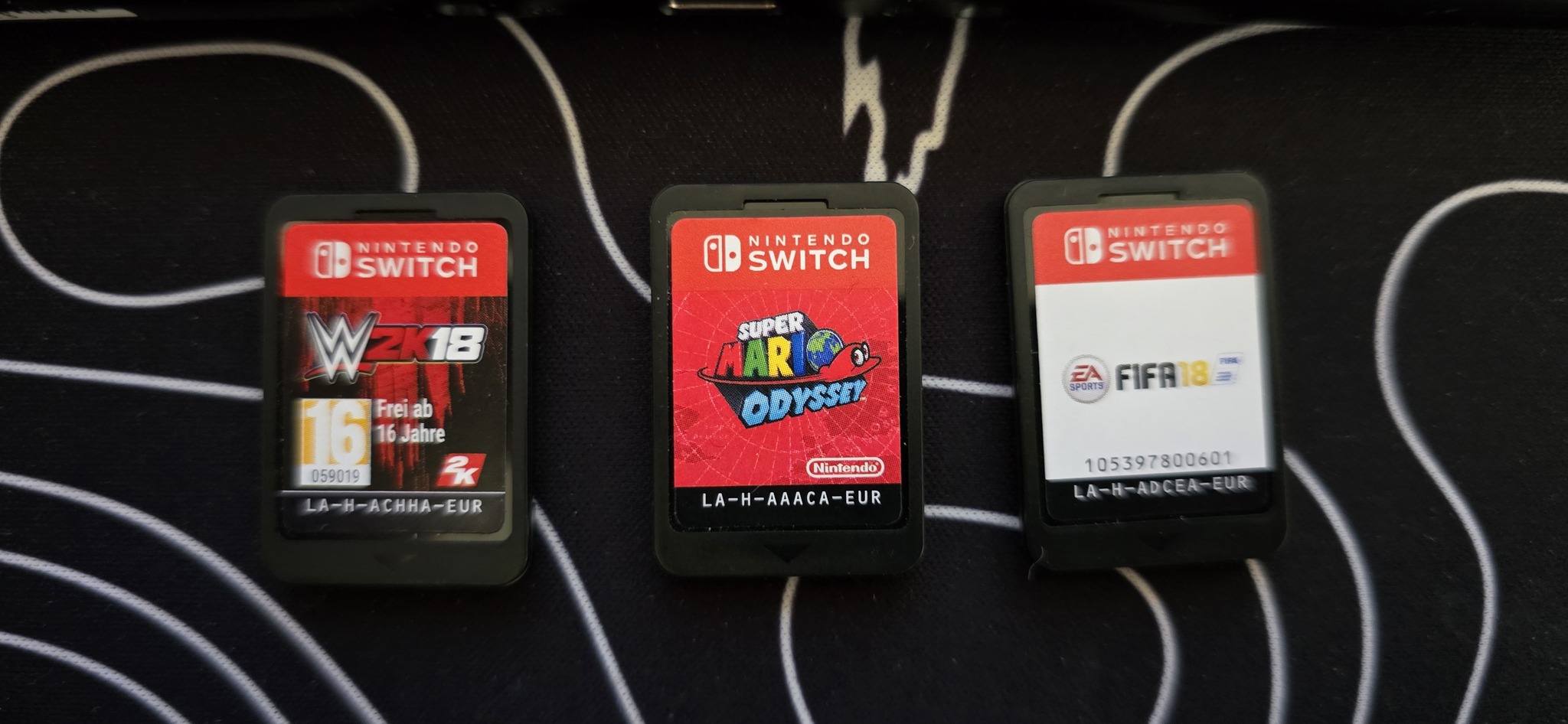 3 db eredeti fizikai játék, Super Mario Udyssey, WWE és Fifa 18.