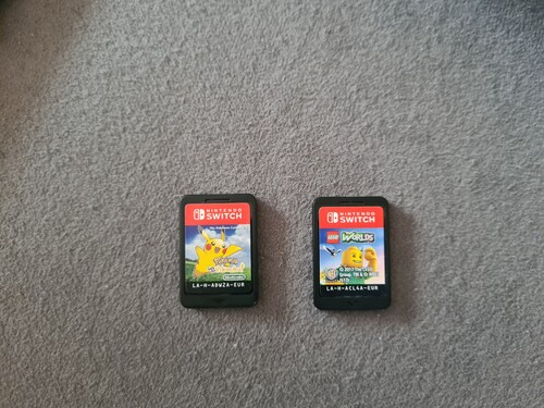 Aképen látható tok nélküli játékok(Lego Worlds, Pokémon Let's go Pikachu)