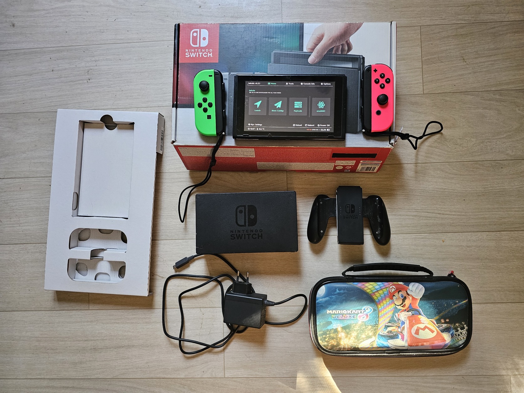 Eladó a képen látható nintendo switch dualboot rendszerrel .a képen látható tartozékokkal új fóliával.