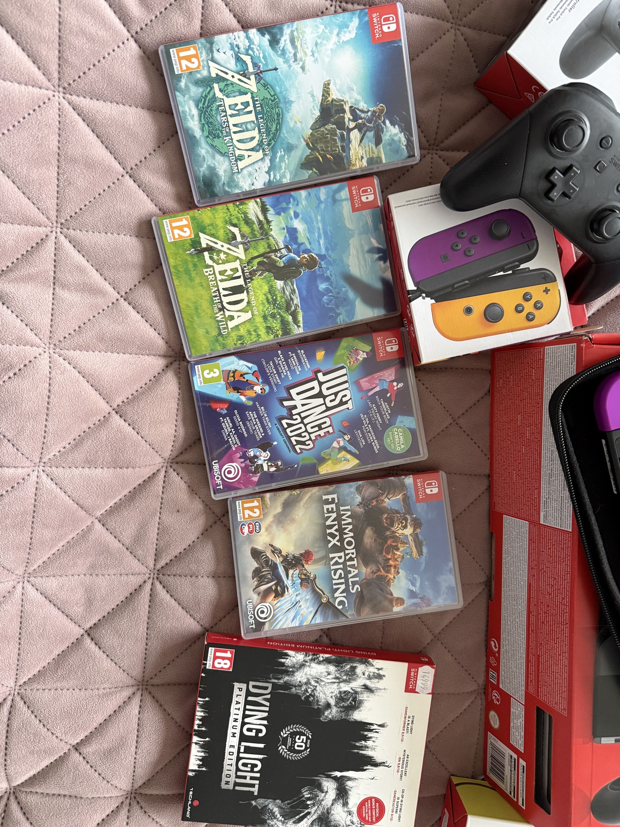 Játékok mellé: Dying light, Just dance 2022, Immortals Fenyx Rising, The legend of Zelda - Breath of the wilds, The legends of Zelda - Tears of the kingdom