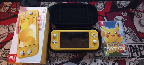 Eladó egy jó állapotú switch lite kézi konzol ,let's go pikachu játékkal és tokkal