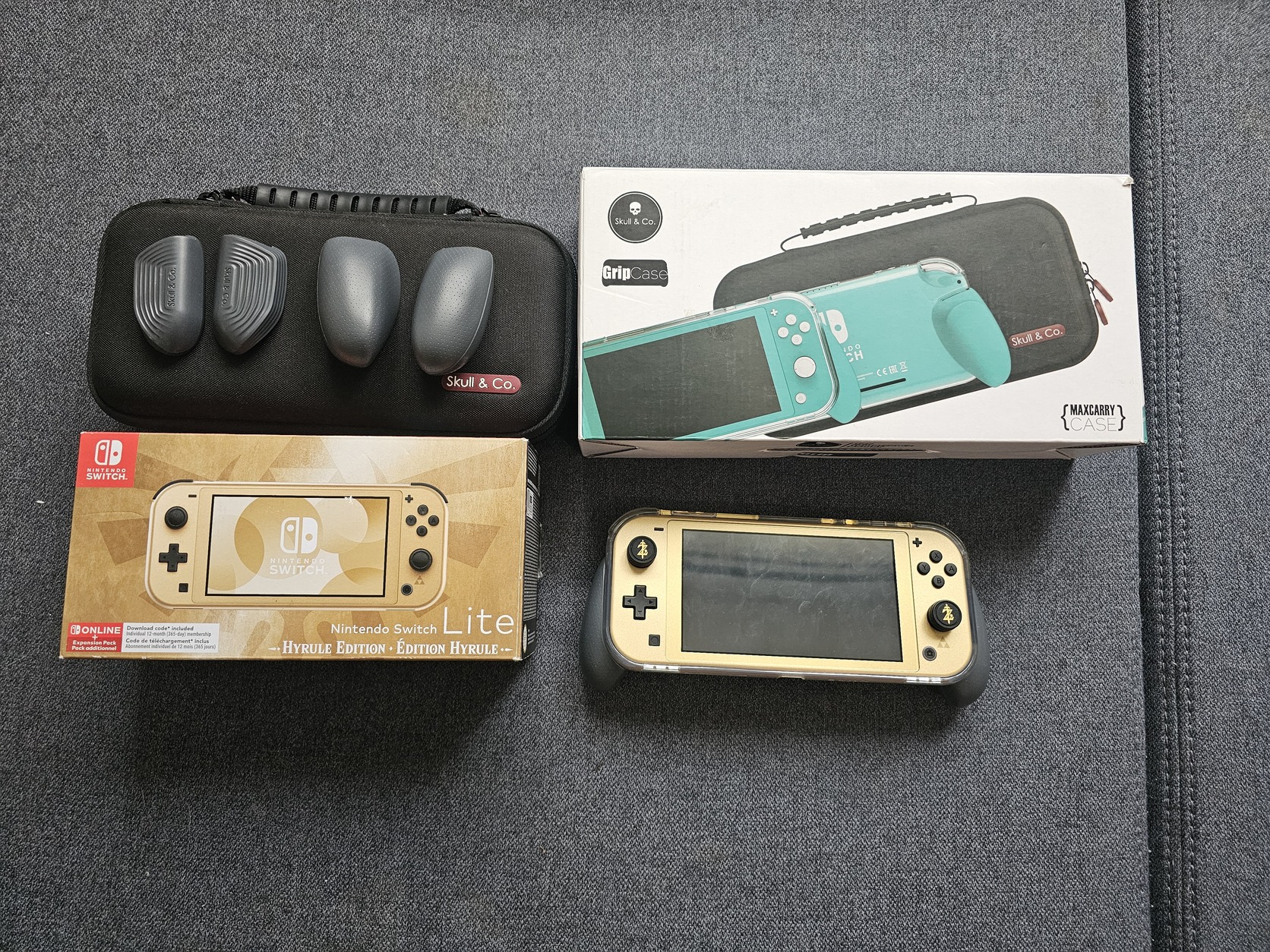 Nintendo Switch Lite Zelda Limited Edition + Skull & Co. Grip / táska