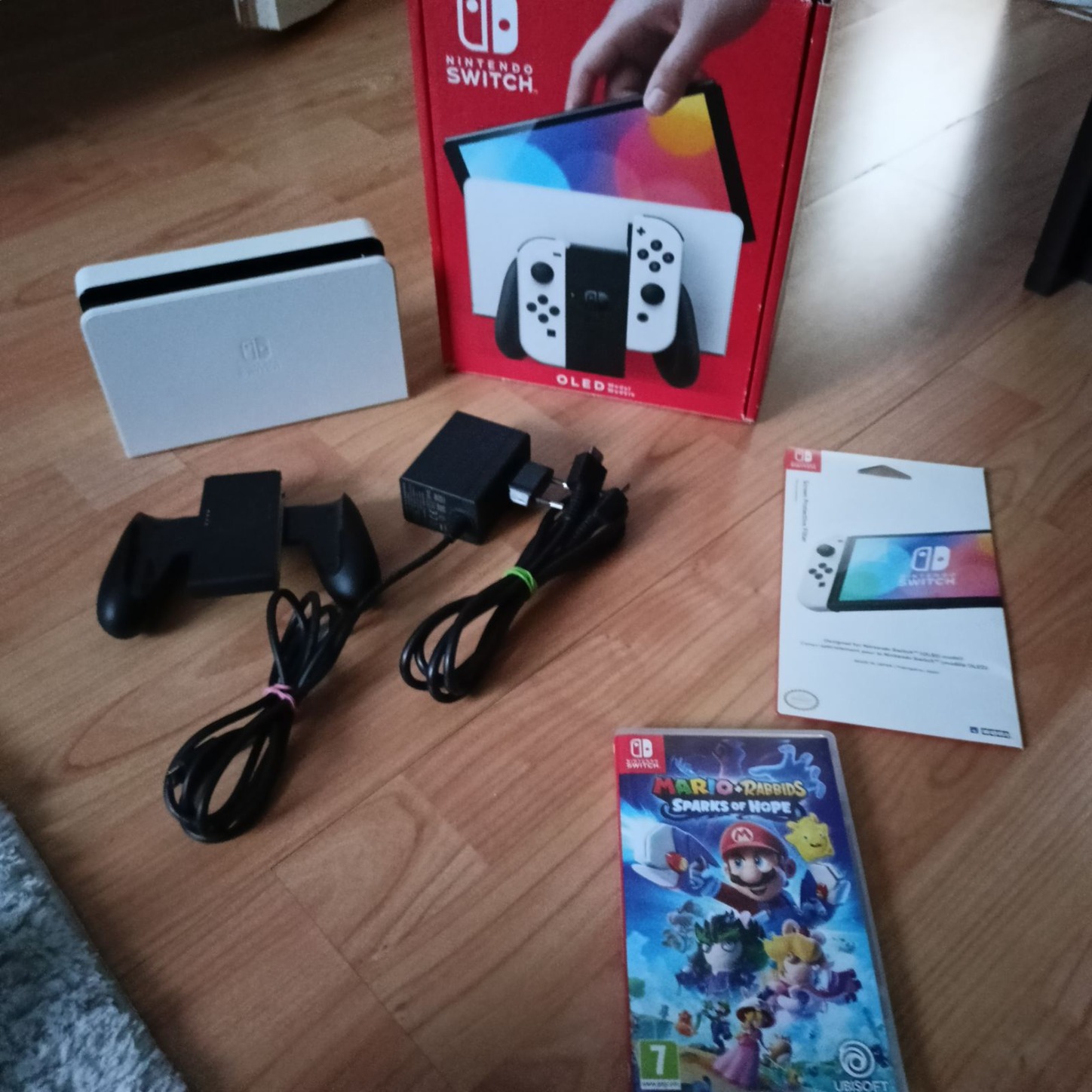 Nintendo Switch OLED fehér + Sparks of hope + tok + védőfólia