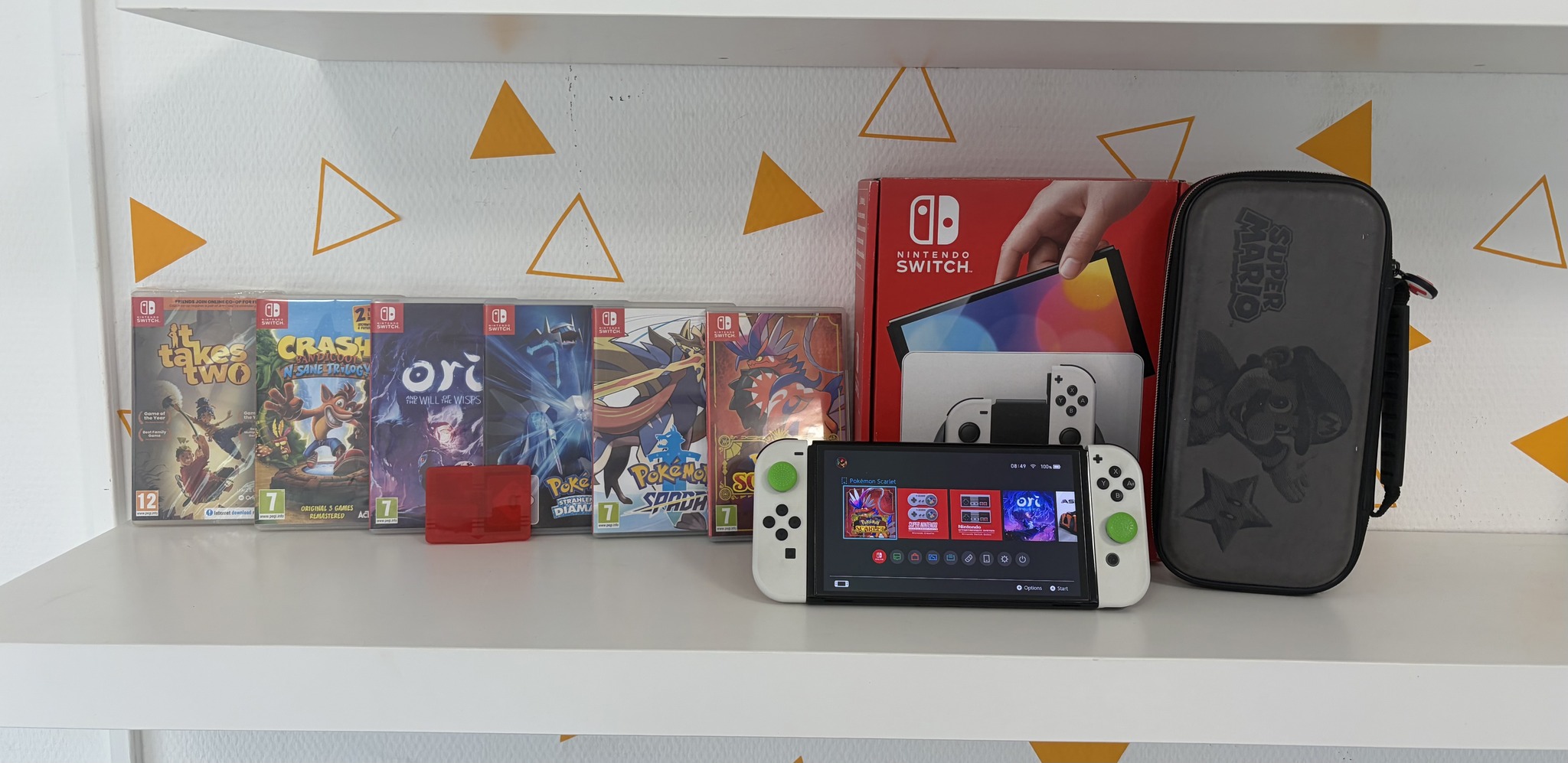 Nintendo Switch OLED + Pokemon és egyéb játékok + kiegészítők
