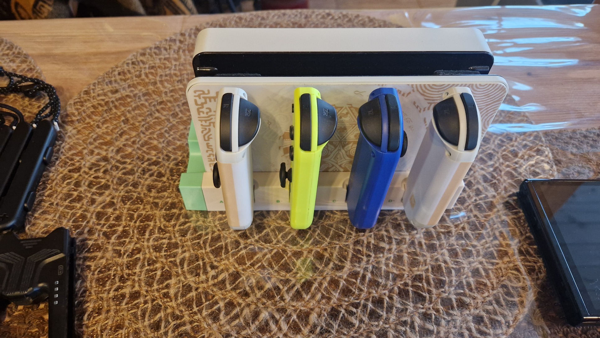 -Joycon töltő, ami a dokkolóba csatlakoztatható, 4db joycon fér bele és a szélén van egy szabad usb is