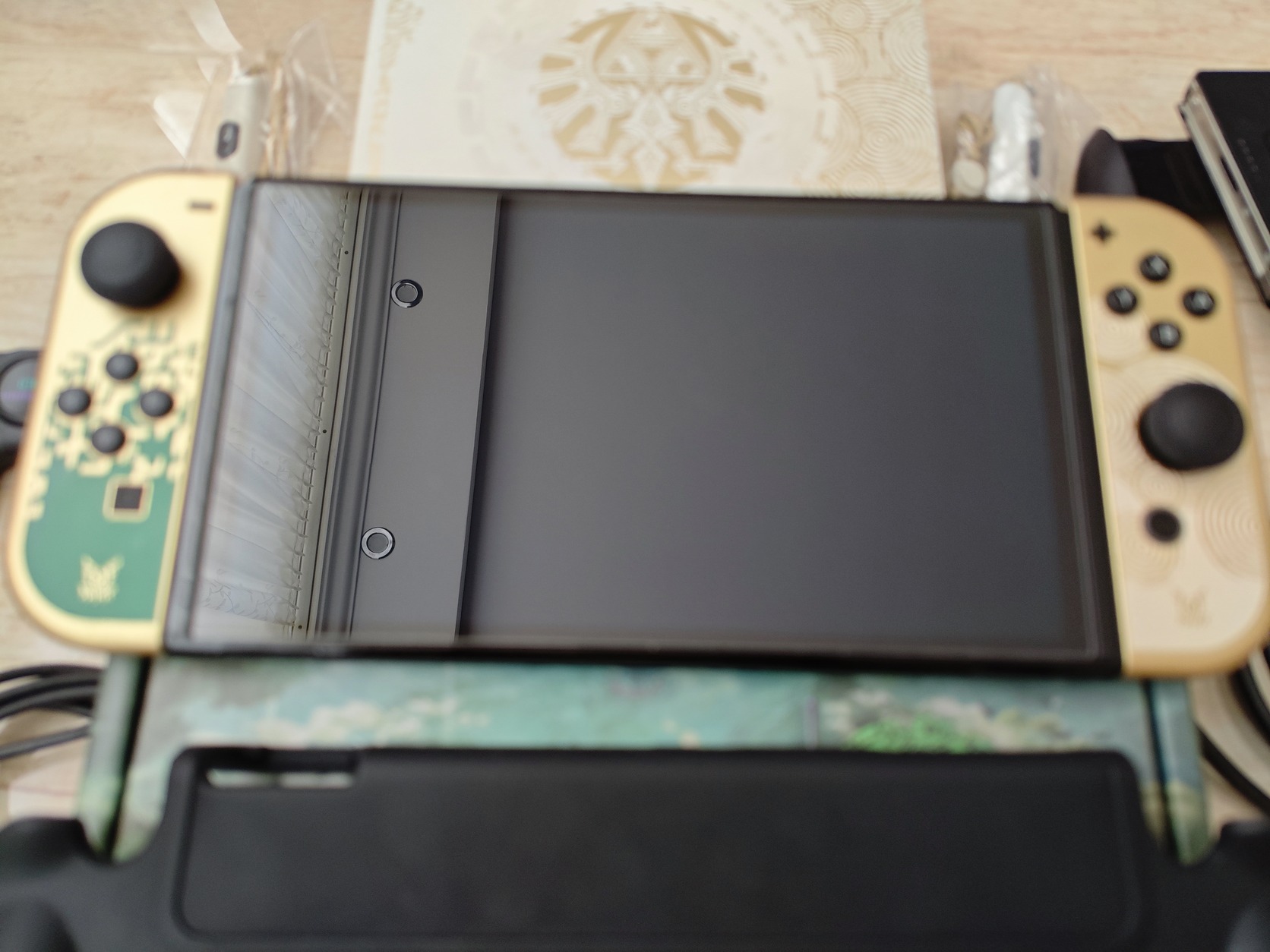 Eladó egy Nintendo Switch OLED (THE Legend of Zelda Tears of the Kingdom), asztali konzol váltás miatt a képeken látható állapotban és extrákkal (+128sd kártya), minden gyári tartozékkal, üvegfóliával!