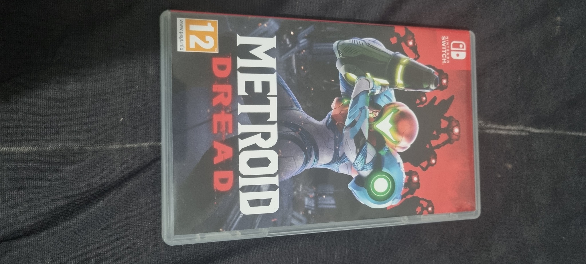 A csomag tartalmaz egy Metroid Dread játékot, egy hordozótáskát és egy üvegfóliát is.