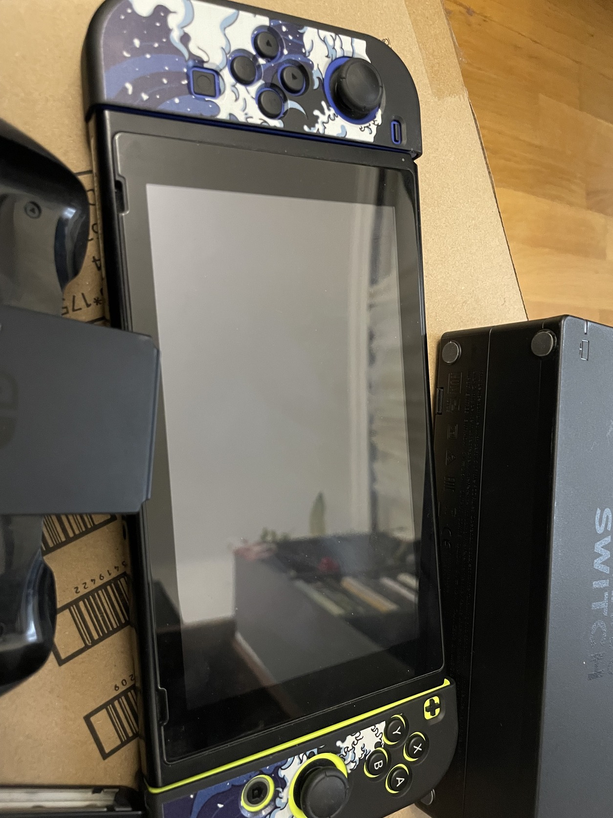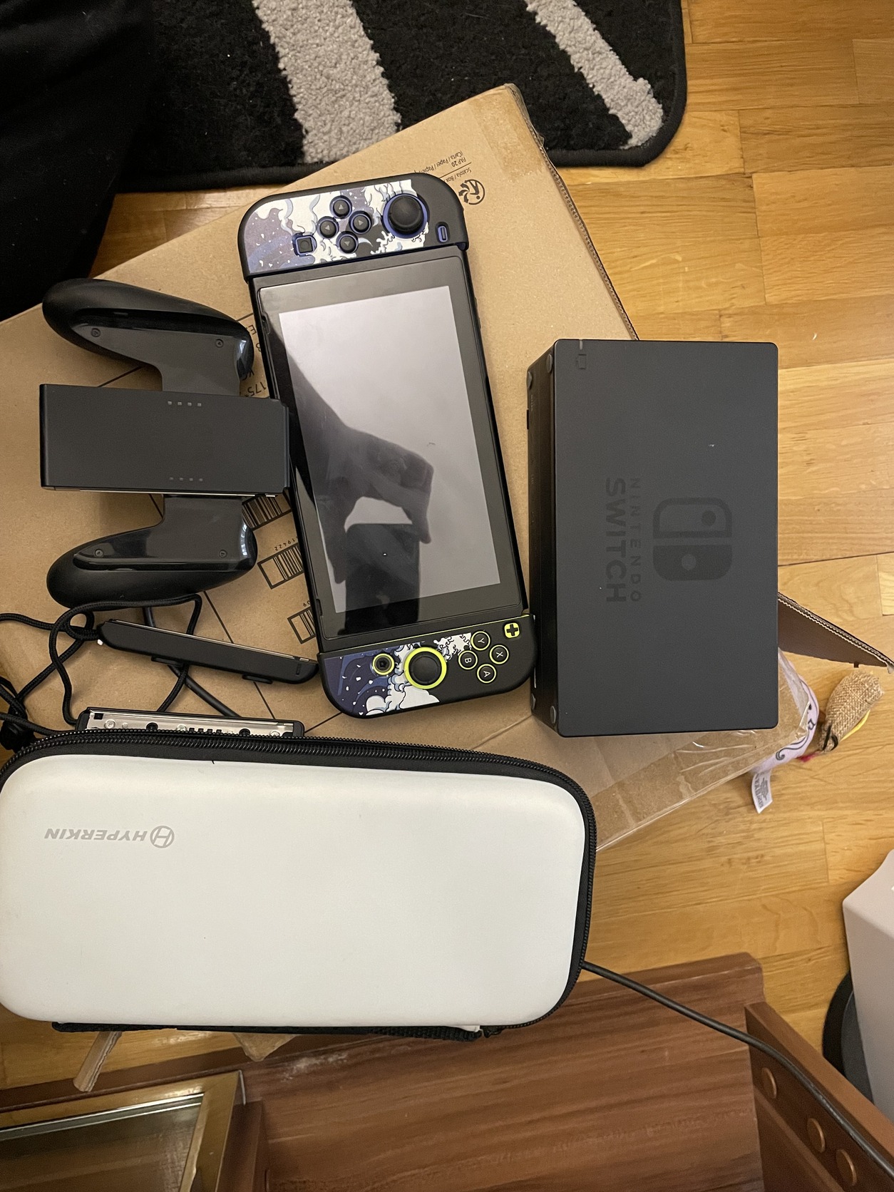Minden tartozékával (töltő, joycon tartó, csuklópánt), illetve adok még hozzá egy keményfedeles hordtáskát is. A joyconok hibátlanul működnek, nem driftelnek, a rajtuk látható gumitok pedig levehető. A kijelző karcmentes, a konzolra vigyáztam, remekül szolgál, egyedül az akksin látszik már a kora, de intenzívebb játékokban ígyis kibír töltés nélkül ~2 órát.