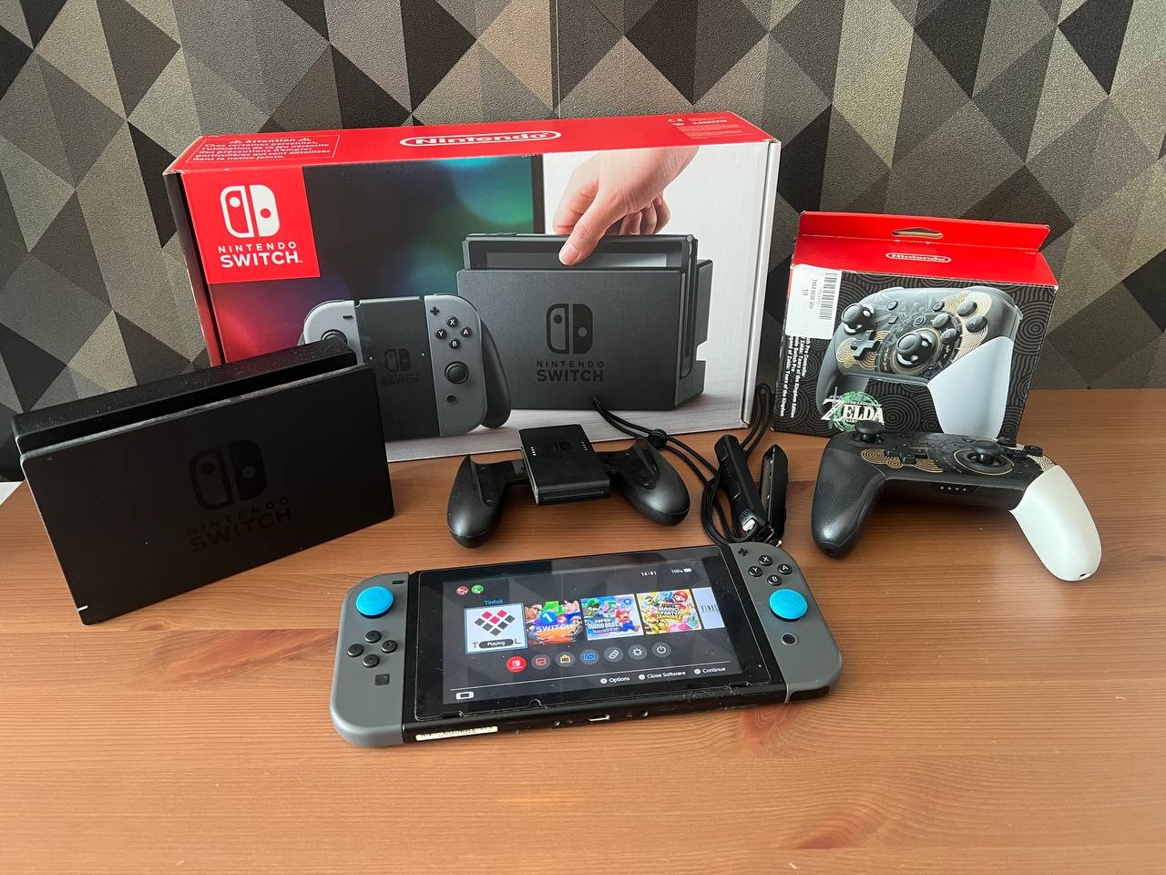 Kihasználatlanság miatt eladó a képeken látható Nintendo Switch V1 konzol The Legend of Zelda Tears the Kingdom Edition Pro Controllerrel együtt, minden gyári tartozékkal.