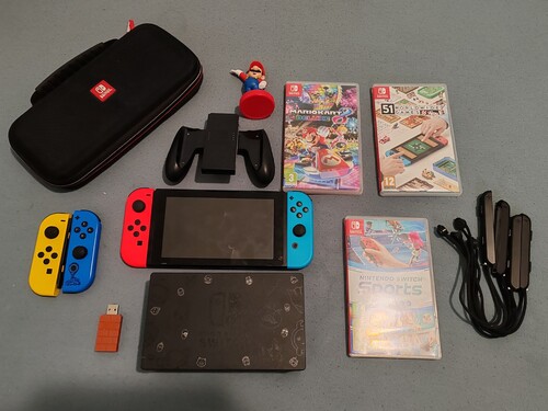 Nintendo Switch v2 Fortnite Edition eladó sok kiegészítővel - új joycon (piros/kék) - hordozó tok játék kártya tartóval - amiibo Super Mario - 8bitdo USB Adapter (bármilyen BT kontroller mükődik) - 3 játék (MarioKart 8 Deluxe, Nintendo Switch Sports és 51 Worldwide Games) A Switch hátlapja le van cserélve, de adom az eredeti Fortnite-os hátlapot. Természetesen jár hozzá HDMI kábel + töltő. a hátlapi támasz nincs meg és az eredeti Fortnite-os joycon-nál nem mükődik az egyik trigger (ez szoftveresen cserélhető más gombra - így lett használva joycon csere előtt) Személyesen átvehető Bükön (de Vas megyében el tudom vinni) Foxpost utánvétel is megoldható