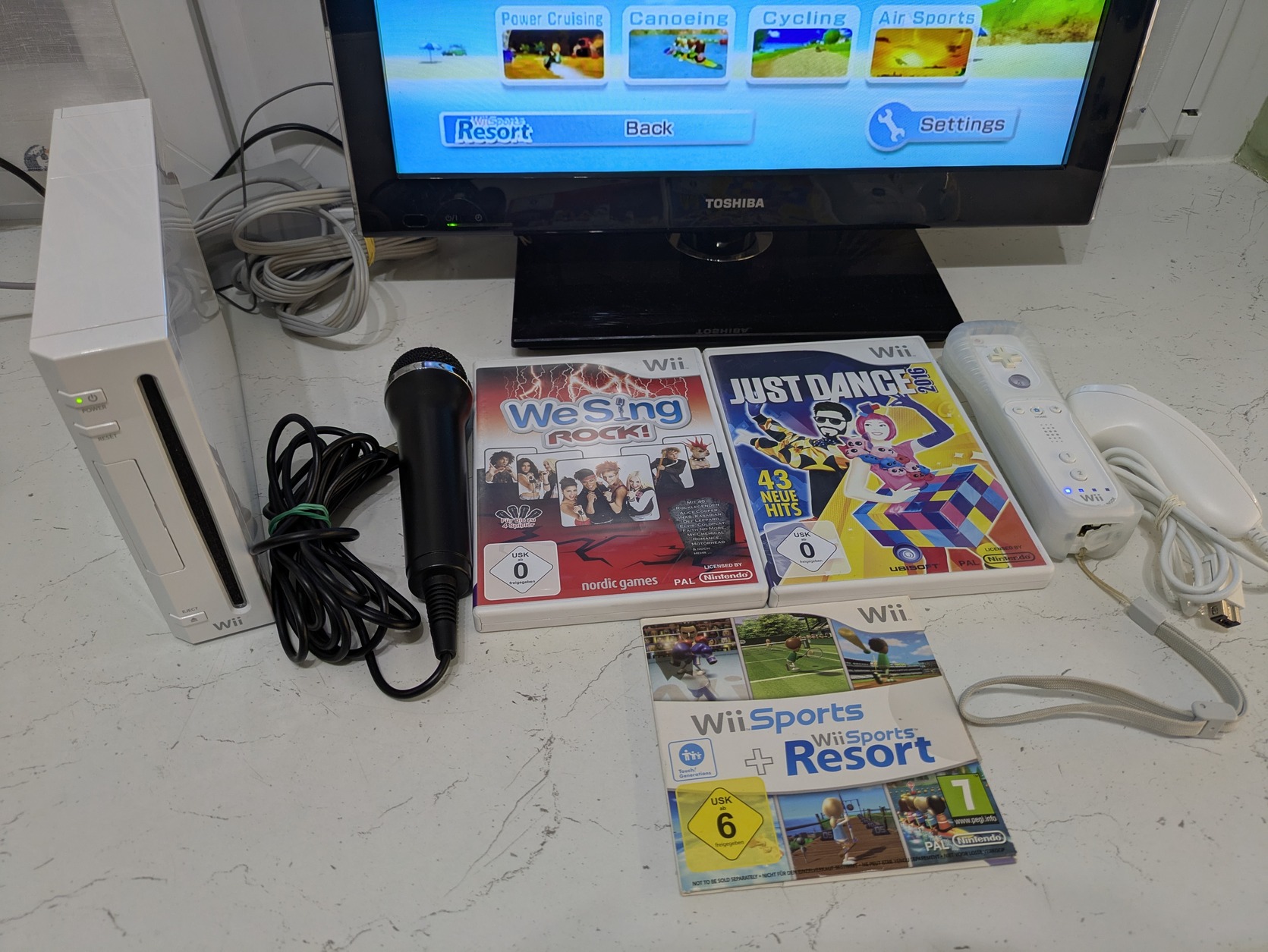Wii konzol, tartozékokkal, gyári játékokkal.