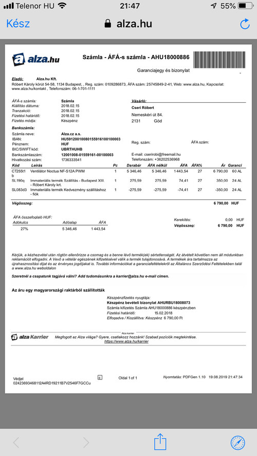 A ventiket 5 év garanciával vásároltam(egy kivételével) 2018 februárban az Alzában, számlája és garanciája megvan.