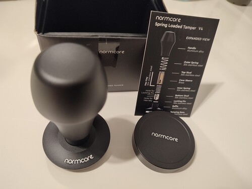 Eladó a címben szereplő tamper. Nyomásszabályozóval ellátott darab, 3 különböző erősségű (kalibrált) rugó jár hozzá. Esztétikus és nagyon jó minőségű. Ma érkezett meg, sajnos benéztem a méretet, nem passzol kosarainkhoz.