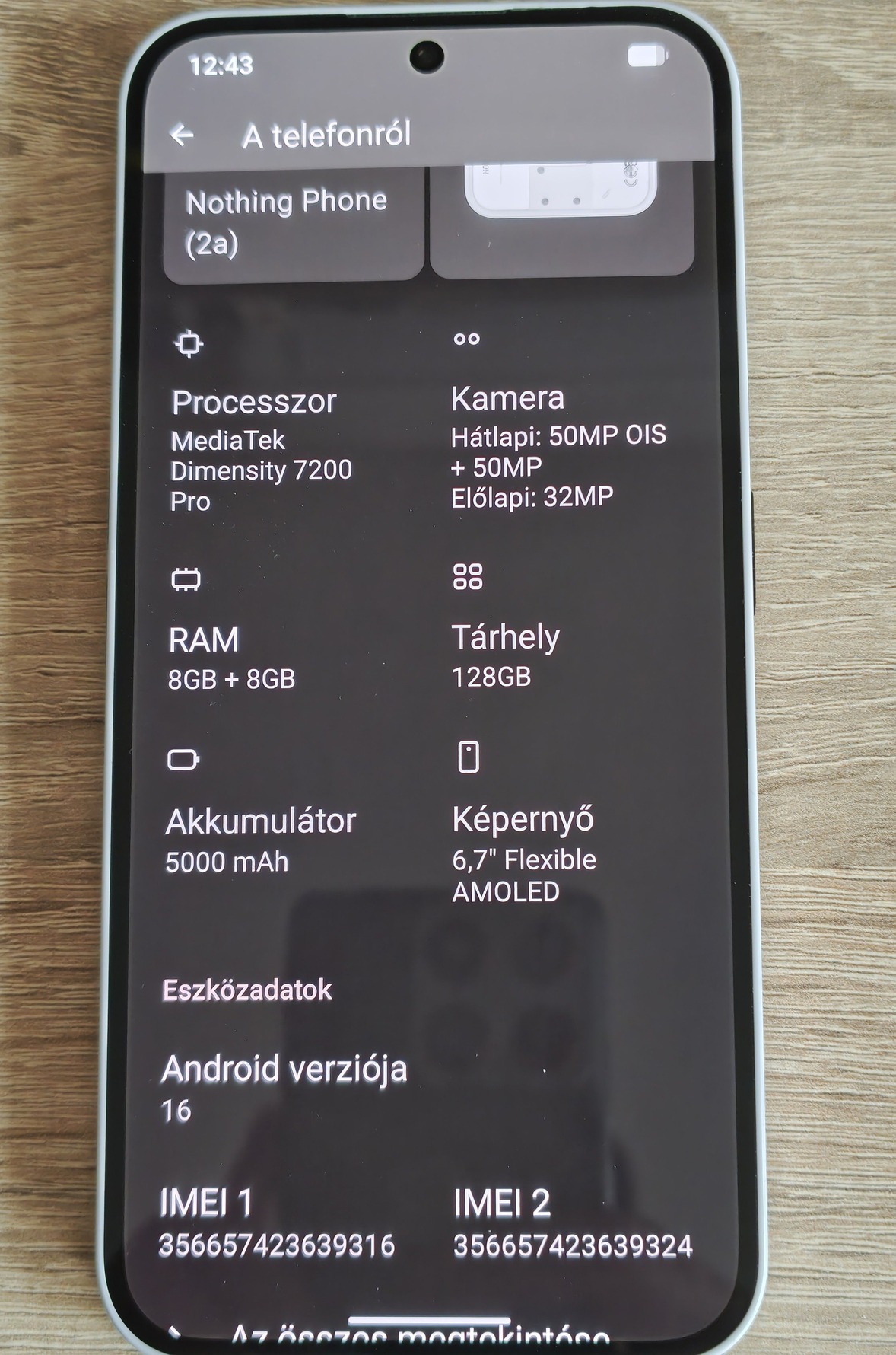 Tehát eladó egy Nothing Phone 2a Milk okostelefon, 8G/128GB, tulajdonostól.