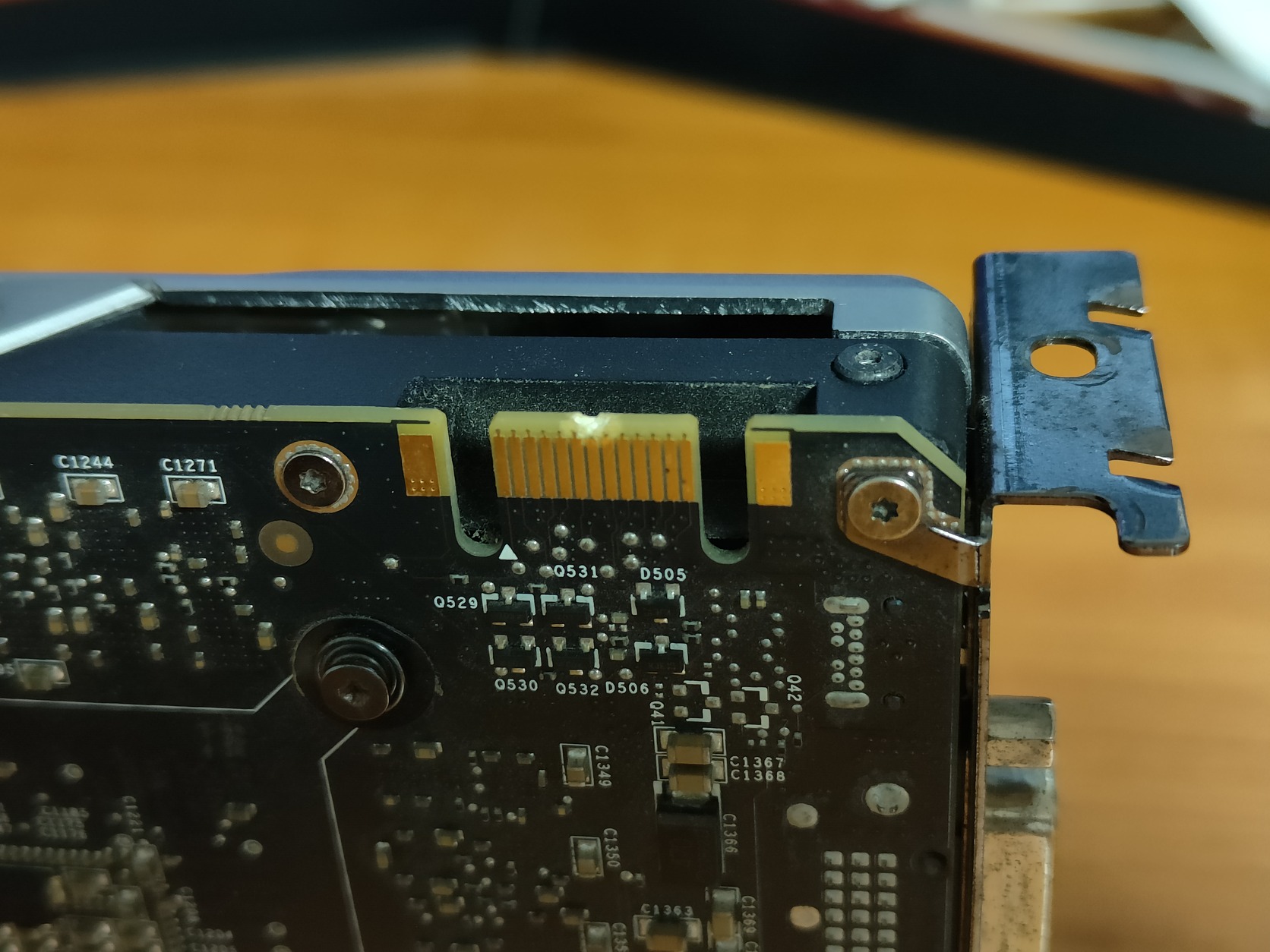 SLI Csatlakozónál kis PCB sérülés látható. Kivezetések, pinek sérülésmentesek. SLI-ben sosem próbáltam járatni.