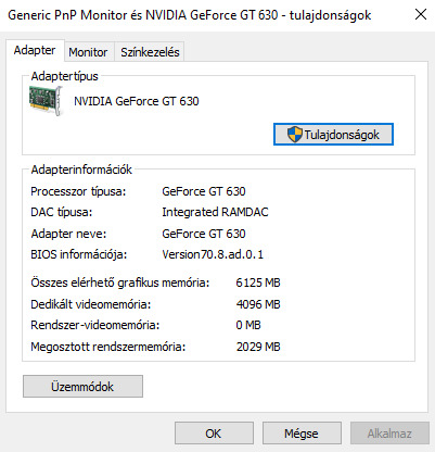 Videókártya adatai: Link