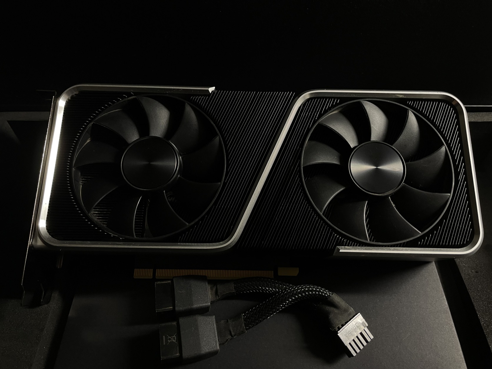 Eladó Nvidia RTX 3060Ti Founders Edition 8GB típusú videókártyám gyári 8to12Pin csatlakozójával.