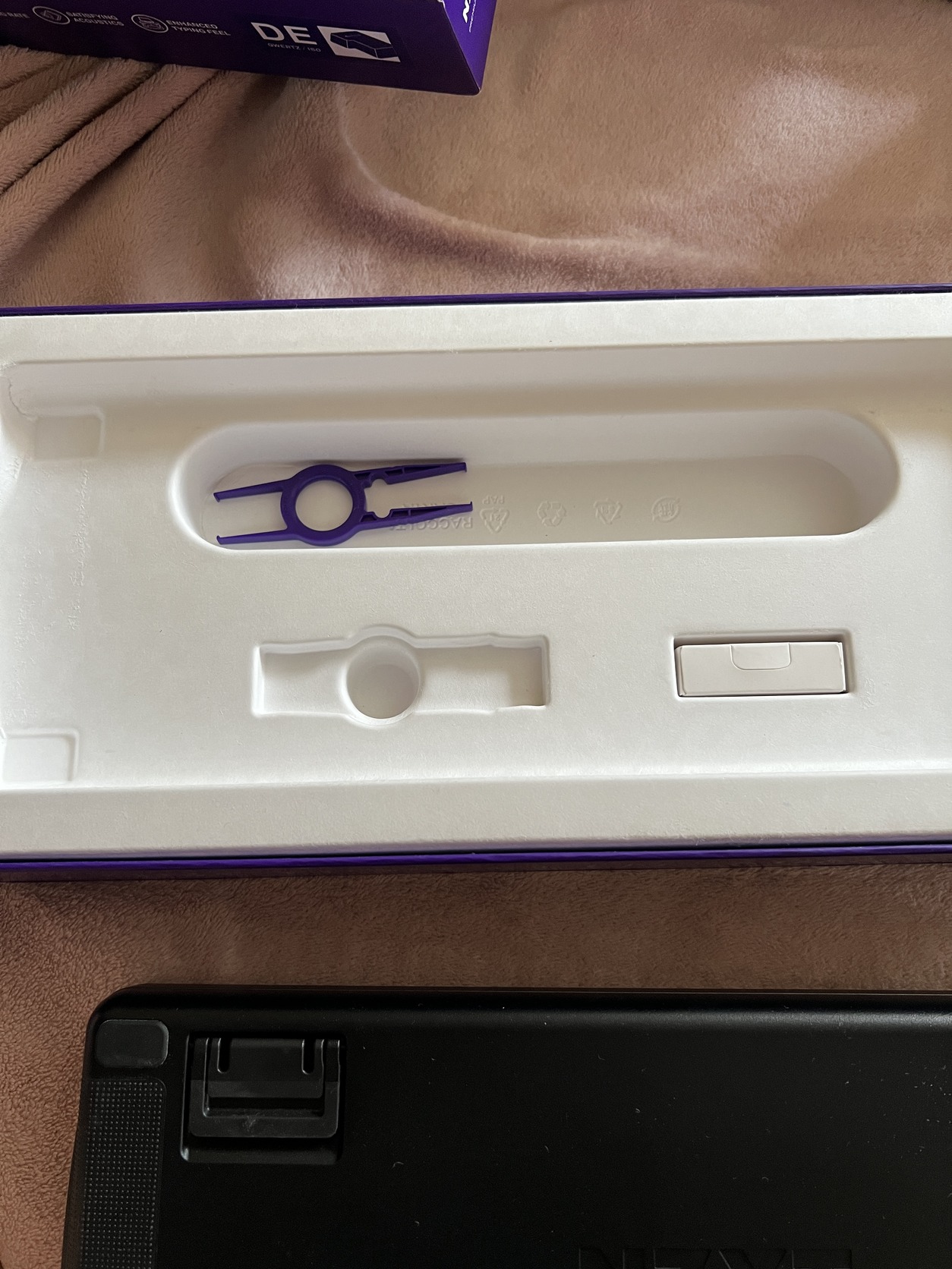 Csak a képen látható tartozékokkal, keycap csipesz, cserélhető 3 db switch. USB kábel nincs meg hozzá!