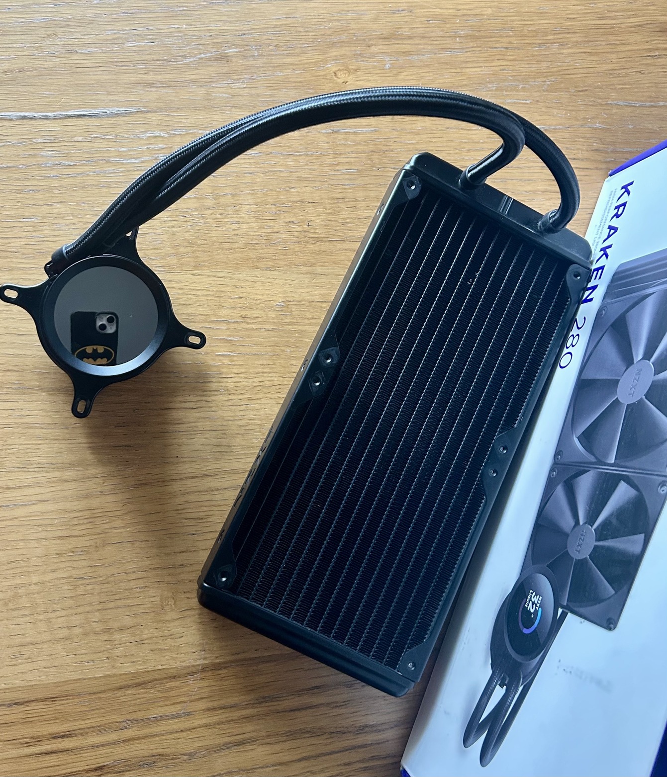 - 280mm-es vízhűtő, 2db 140mm-es nem RGB-s ventivel (nálam Corsair QL-el ment),